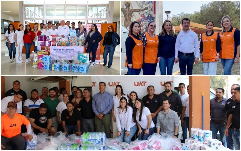Por su parte, la UAT en Tampico activó su red de apoyo, recolectando más de 1,000 despensas. Los artículos recolectados incluyen agua, alimentos no perecederos como frijoles, arroz, aceite, atún, pastas, conservas; así como productos de higiene y limpieza como papel sanitario, pañales, jabones, cloro y toallas sanitarias.