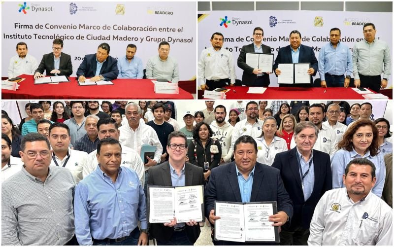 Con el objetivo de establecer las bases y mecanismos que propicien el máximo desarrollo institucional a través de la formación y especialización de recursos humanos, el impulso de programas tecnológicos y académicos entre otros temas, este jueves se realizó la firma del Convenio Marco de Colaboración entre el Instituto Tecnológico de Ciudad Madero y Grupo Dynasol.